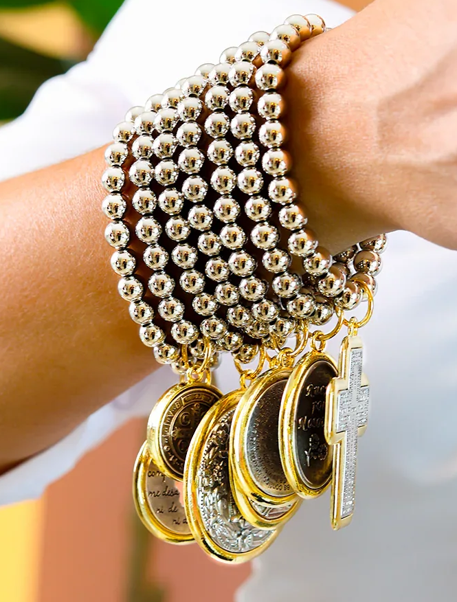 Our collection consists of elastic bracelets with silver/gold beads or gold rings + a charm of your choice, for a value of USD 25.